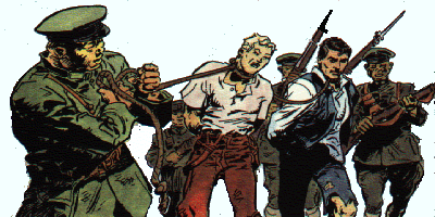 En fait, la série est construite sur le mode aventure-humour. Ainsi les situations musclées succèdent aux situations burlesques et vice-versa. Antonio Parras, dont le trait est au départ on ne peut plus réaliste; force sur sa plume et tente d'obtenir par moment un dessin proche de la caricature. Quelques astuces graphiques émergent ainsi au hasard de la série et lui donnent un cachet unique. Les scènes d'action, par exemple, sont le plus souvent parodiées à l'extrême  et  certains des antagonistes en sortent en petits morceaux. Des yeux, des mains mais aussi des dentiers se baladent un peu partout. Exemple plus précis, dans "Le soutien-gorge bleu" planche 3, ce "vagabond" qu'on abat alors qu'il saute d'un train et qui arbore de ce fait en plein vol une tête de mort. Beau raccourci, non ?